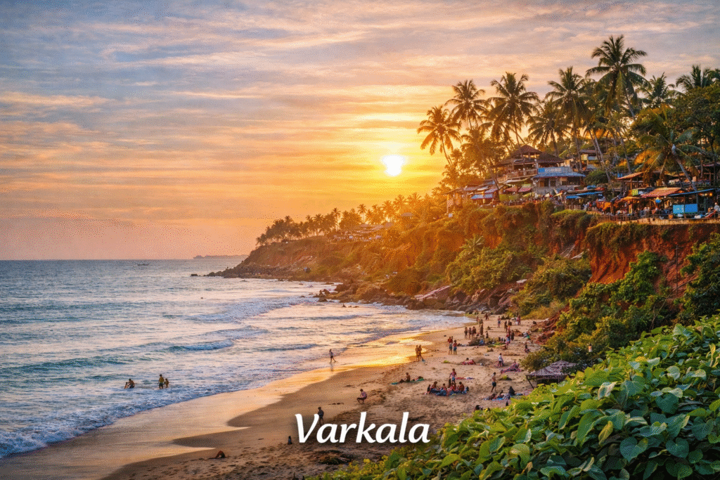 Varkala Beach holds deep religious significance, and near the entrance you can often see priests conducting traditional ceremonies. Behind the beach rises a dramatic red sandstone cliff that is lined with restaurants, cafes, guesthouses, and resorts.